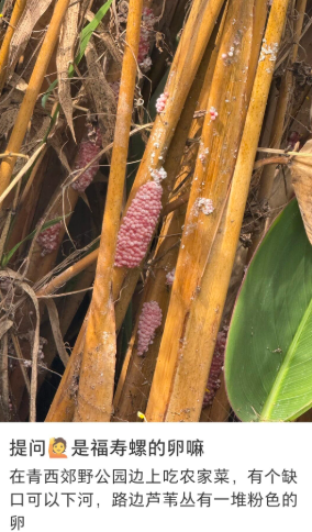 近日,有网友在社交平台上爆料,前段时间在家旁的河道里,发现了好多福寿螺的红色卵。